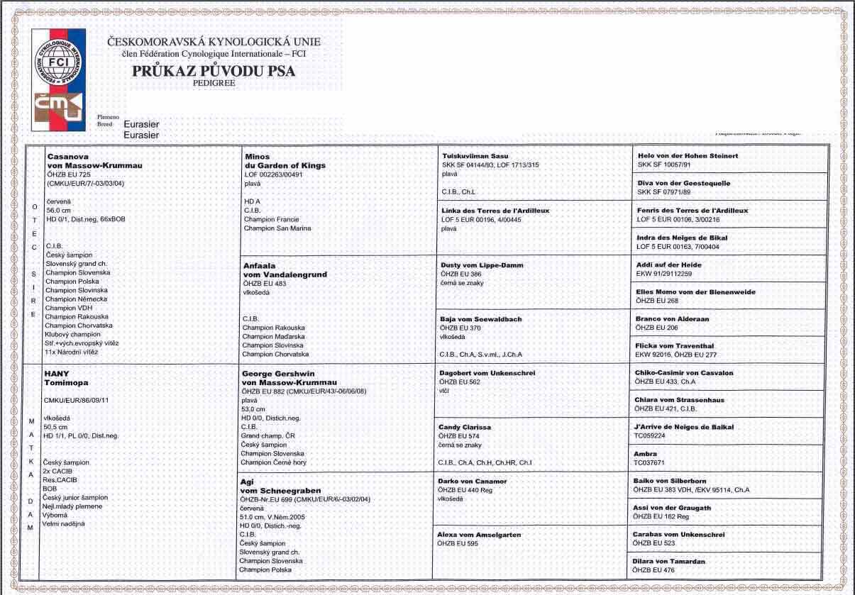 Jmenuji se Cir Hajifa a jsem Eurasier. Narodil jsem se 9.9.2013 v chovné stanici Hajifa v Ústí nad Labem. Moji rodiče jsou Casanova von Massow-Krummau a Hany Tomimopa. Otec patří k TOP hezounům v Evropě. ![]()