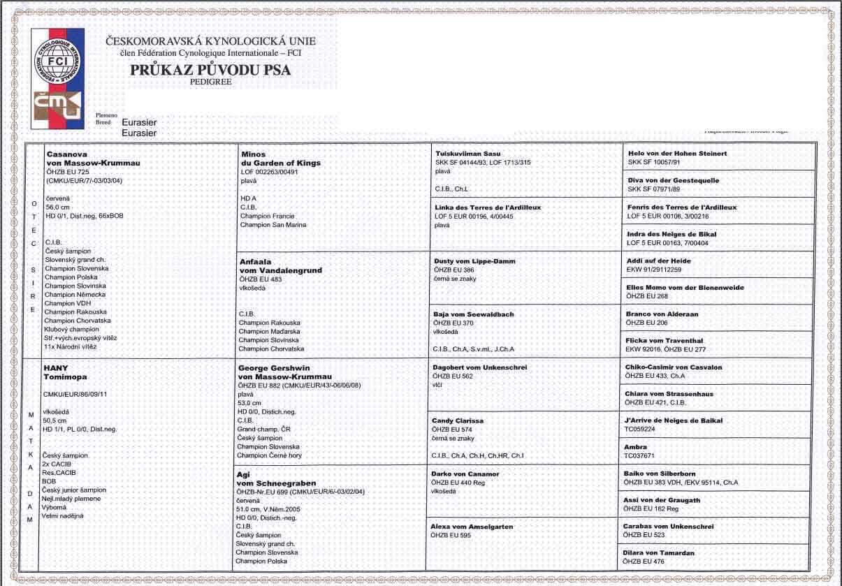 My name is Cir Hajifa and I'm eurasier. I was born on 9.9.2013 in the kennel HAJIFA v Usti nad Labem. My parents are Casanova von Massow-Krummau and Hany Tomimopa. My father is one of the TOP beautiful in Europe. ![]()